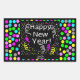Este es uno de mis dibujos de Año Nuevo que llamo "Feliz Saludo de Año Nuevo", he agregado coloridos refranes de fiesta, confetti y coloridos puntos de polka como fondo de mi dibujo para que mi dibujo de Año Nuevo sea colorido y único. Ahora puedes ordenar mi dibujo agregado a este pegatina rectangular para celebrar un Año Nuevo.