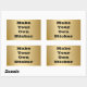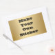 La textura de fondo de la superficie de la placa metalizado dorada hace pegatinas y sellos para sobres maravillosos para muchos usos, incluyendo premios dorados y etiquetas. Personalice fácilmente agregando cualquier texto con el tipo de letra negro negrita mostrado o cambiando fácilmente el color y el estilo. Se muestra el popular pegatina de forma rectangular.