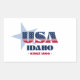 Idaho pegatina. Este diseño captura el espíritu de la condición de estado de Idaho en 1890 con texto en negrita y los colores vibrantes de la bandera estadounidense.