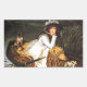 James Tissot Young Lady en un pegatina de barco. Pintura de aceite sobre lienzo de 1870. El artista francés James Tissot presentó con frecuencia a hermosas mujeres jóvenes en su obra de arte. El Young Lady in a Boat representa una morena de bonito vestida con un vestido victoriano blanco, en un pequeño bote estacionado entre carrizos al borde de un lago. La mujer sujeta su mentón en la mano y sostiene un abanico amarillo en el otro. Ella está drapada por una manta intrincada. Un grupo de flores silvestres amarillas y violetas se sienta delante de ella, y un tierno pequeño pug se sienta al timón del bote. Un bonito regalo para los amantes de Tissot, del arte victoriano y de las pinturas de barcas antiguas.