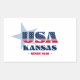 Pegatina de Kansas. Este diseño captura el espíritu de la condición de estado de Kansas en 1861 con texto en negrita y los colores vibrantes de la bandera estadounidense.
