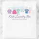 Un gran pegatina para tiendas de ropa, venta de garajes, mercaderías y tiendas de segunda mano orientadas a la venta de niños, niños y ropa para bebés. Un lindo diseño con ropa para niños colgando en una línea que incluye una chaqueta, falda, medias, camisetas y mantas. Ideal para usar en envases, etiquetas colgantes, bolsas de regalo, productos de tienda y más.