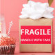 Mango frágil con pegatina de cuidado para etiquetas, envases, productos
