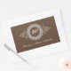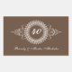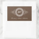 Celebra la pareja de aniversario con total elegancia. Un fondo marrón chocolate destaca el texto personalizado con el número de años de matrimonio resaltado en un adorno intrincado. Añade el nombre de la pareja u otro mensaje debajo. Grande como sellos para sobres o favores. Disponible en colores alternativos con productos coincidentes.