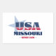 Pegatina de Misuri. Este diseño captura el espíritu de la condición de estado de Misuri en 1821 con texto en negrita y los colores vibrantes de la bandera estadounidense.