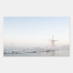 Pegatina fotográfico rectangular de un molino de viento en la nieve al lado de un canal durante una salida de sol niebla en invierno en los Países Bajos