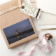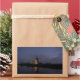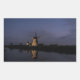 Pegatina fotográfico rectangular con molinos de viento históricos iluminados con reflexión en el agua del río durante la Hora Azul al comienzo de la noche en Kinderdijk en los Países Bajos.