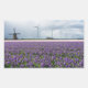 Foto pegatina de un paisaje con un molino de viento tradicional y varios molinos de viento modernos para generar energía verde detrás de un campo con flor de jacinto púrpura en la región de Bulb en Holanda.