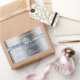 Navidades Cookie, Fudge, Cake, Gift Label Pegatina. cinta de satén azul bonito con un lindo hombre de pan de jengibre sentado en un bol de hornear azul. Personaliza tu texto. SE IMPRIMEN TODOS LOS ELEMENTOS DE DISEÑO.