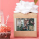 Pegatina rectangular para emparejar nuestra tarjeta de saludo "Coro Navidad" con una imagen vintage de un coro infantil de los años 40 y un poco de partitura para la canción "Hogar, dulce hogar". La vegetación Navidad, las flores y la lira con un gran arco rojo. El sentimiento dice "Feliz Navidad y feliz año nuevo". Vea la tarjeta de felicitación correspondiente, el saludo del rompecabezas y la etiqueta de regalo. Ver toda la colección de Pegatinas de vacaciones en INVITES | Sección Pegatinas y etiquetas.
