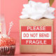 Pegatina dice: Por favor, no se incline Fragile.