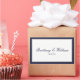 Clásica novia y novio azul marino con pegatinas rectangulares de cita. Borde azul marino y gris con escritura azul marino y texto plano.