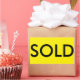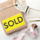 Usa este pegatina amarillo brillante para etiquetar rápidamente un cartel de venta de bienes raíces con SOLD!