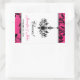 Este moderno y moderno pegatina de botellas de agua, boda de candelabro rosa fucsia, negro y blanco, está decorado con un patrón de flores ornamentales, rollitos y remolinos que concuerda con la invitación a la boda que se muestra a continuación. Si necesita ayuda o necesita algún elemento adicional que coincida, envíe su solicitud a niteowlstudio@gmail.com.