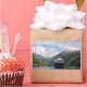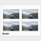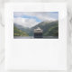 Pegatina de un gran crucero en el estrecho fiordo de Geirangerfjord con grandes montañas alineadas en el fiordo, visto desde la aldea de Geiranger en Noruega.