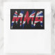 Pegatina con las letras MMA hechas en una angustiada bandera británica.