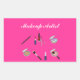 Estos grandes pegatinas rectangulares tienen un diseño de varios elementos de maquillaje como sombra ocular, labio, polvo facial, rubor y pinceles. "Artista de maquillaje" está escrito en blanco. Este es un gran producto promocional para promocionar sus habilidades y negocios. Este producto hace un gran sello para sobres también. Este producto promocional puede ser personalizado con su nombre, teléfono o dirección de correo electrónico. Este diseño se puede adquirir tal cual o puede utilizarlo como plantilla para que pueda hacer su propio diseño promocional único. Sólo tienes que cargar tus propias imágenes o gráficos en la plantilla y comprar. Este diseño también se puede personalizar para fiestas de maquillaje.