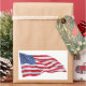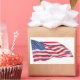 Ilustracion acuarela de una bandera norteamericana ondeando. ¡Salud! de la Casa de Diseño de Buckner.
