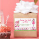 Pegatinas de negocios de edredón de personalizado divertidos y coloridos en verde, rosa y blanco. Gráficos de ángel, edredón y fondo de vieiras decoran el pegatina, con texto personalizado rosa y verde listo para personalizar para su negocio. Hay productos que coinciden.