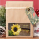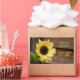 Pegatina de planchas con una foto de un girasol junto a una pared de madera. ¡Personalizable.