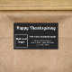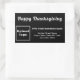 Pegatina de Acción de Gracias para saludar a sus clientes. Pegatina que puede usar como material de marketing para promocionar su negocio y promocionar su marca. Pegatina con el saludo de agradecimiento y con su nombre de negocio para crear conciencia de marca. También puede utilizarlo como etiqueta de producto esta temporada de acción de gracias. La forma pegatina es rectángulo. El diseño pegatina es simple fuente blanca sobre fondo negro. Para personalizar de este pegatina, cargue el logotipo de su empresa, escriba el nombre de su empresa o empresa, la dirección y el número de teléfono y compruebe la apariencia. Si la apariencia le resulta agradable, puede realizar su pedido ahora. Si necesita cambiar el tamaño y mover el logotipo y los textos para que encajen en este pegatina o en otras formas y tamaños que elija, cambie la herramienta de diseño. También puede realizar otros cambios de acuerdo con sus preferencias en la herramienta de diseño, como cambiar el color pegatina, el color del tipo de letra y el estilo del tipo de letra. ¡Feliz Día de Acción de Gracias!