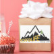 Vida en el tablero, para los snowboard. Montaña blanca y negra, vida de tabla hecha en amarillo delineado en blanco con un snowboard verde saltando del logo. Desde 1977, cuando el Sr. Burton inventó el snowboard como un recordatorio.