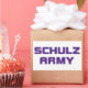 Pegatina rectangular con el logotipo del ejército de Schulz Morado