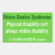 Texto del pegatina: Síndrome de Ehlers-Danlos: La discapacidad física no siempre es visible. LifeWithEDS.com Todo lo recaudado se donará al nuevo Centro de Atención Clínica e Investigación del EDNF.