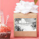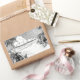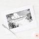 Un pegatina con un grabado vintage de palmeras en una playa de arena y bonitas nubes sobre las tranquilas olas del océano. Haga clic en Personalizar para agregar su nombre o mensaje.