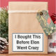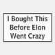 Que todos sepan que compraste tu Tesla antes de que Elon se volviera loco. ¡Este simple pegatina de texto hará saber a todos que no apoyas sus travesuras actuales!