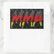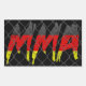 Pegatina con las letras MMA hecho en una angustiada bandera alemana detrás de una valla de eslabón.