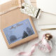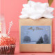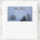 Paisaje invernal con estrellas y copos de nieve, y las palabras doradas "Feliz Navidad". El resto del texto es personalizable.