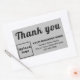 pegatina de personalizables con textos de Gracias para apreciar la compra o el apoyo de sus clientes. También puede utilizarla como material de marketing para promocionar su negocio y promocionar su marca o crear conciencia de marca. Los diseños son textos negros sobre fondo gris y forma rectangular. Para personalizar de este pegatina, cargue el logotipo de su empresa, escriba el nombre de su empresa o empresa, la dirección y el número de teléfono. Después de subir el logotipo y escribir textos, por favor compruebe la apariencia. Si la apariencia le resulta agradable, puede realizar su pedido ahora. Si necesita cambiar el tamaño y mover el logotipo y los textos para que encajen en este pegatina, cambie la herramienta de diseño. También puede realizar otros cambios según la apariencia que prefiera en la herramienta de diseño, como cambiar el color de fondo, el color de la fuente y el estilo de fuente.