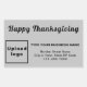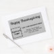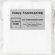 Pegatina de Acción de Gracias para saludar a sus clientes. Pegatina que puede usar como material de marketing para promocionar su negocio y promocionar su marca. Pegatina con el saludo de agradecimiento y con su nombre de negocio para crear conciencia de marca. También puede utilizarlo como etiqueta de producto esta temporada de acción de gracias. La forma pegatina es rectangular y el color es gris. El color de fuente es negro. Para personalizar de este pegatina, cargue el logotipo de su empresa, escriba el nombre de su empresa o empresa, la dirección y el número de teléfono y compruebe la apariencia. Si la apariencia le resulta agradable, puede realizar su pedido ahora. Si necesita cambiar el tamaño y mover el logotipo y los textos para que encajen en este pegatina o en otras formas y tamaños que elija, cambie la herramienta de diseño. También puede realizar otros cambios de acuerdo con sus preferencias en la herramienta de diseño, como cambiar el color pegatina, el color del tipo de letra y el estilo del tipo de letra. ¡Feliz Día de Acción de Gracias!