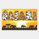 Pegatina rectangular para emparejar nuestro "Safari de la puesta del sol de Tanzania" con una imagen de un antílope africano y una silueta de árbol adornados con el sol de Tanzania y el "safari" escrito en divertidas letras de papel animal. Vea la combinación de invitación, etiqueta de regalo y papel de envoltura. Ver toda la colección de Pegatinas Safari en INVITES | Sección Pegatinas y etiquetas.