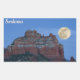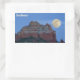 Pegatina rectangular con la imagen de una pintura acuarela de una superluna sobre los acantilados de Crimson, una formación rocosa roja cerca de la ciudad de Sedona, Arizona, y la cabeza de Roca Snoopy, una formación rocosa predominante y reconocible. Consulte la postal correspondiente. Vea toda la colección de Pegatinas de Arizona en la sección CARDS, POSTCARDS & PEGATINAS.
