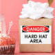Peligro Pegatina de área de Gorra duro (Rectángulo)