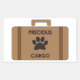 Este pegatina de coche para los amantes de las mascotas es una maleta que dice Precious Cargo. Marrón coloreado con una huella de pata en el centro.