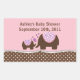 El pegatina lindo de la fiesta de bienvenida al bebé del elefante y del elefante del bebé que ofrecía un pequeño sistema dulce del elefante del bebé y de la mamá en un fondo rosado con una polca marrón punteó acento. ¡Pegatina perfecto para los favores del bebé o los sellos para sobres de la invitación y las invitaciones del nacimiento! Las invitaciones a juego, las invitaciones del nacimiento, sellos y le agradecen observan están disponibles en nuestra tienda en www.celebrateitinvites.com. recuerdos de la ji del ©Chi