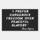 Desata tu espíritu patriótico con nuestra pegatina Thomas Jefferson Quote Bumper. Inspirado por uno de los Padres Fundadores de Estados Unidos, esta pegatina de parachoques presenta la frase audaz y profunda "Prefiero una libertad peligrosa antes que la esclavitud pacífica". Esta pegatina de parachoques de alta calidad, elaborada con cuidado, es una declaración perfecta de su compromiso con la libertad individual. Su texto blanco destaca orgullosamente en un fondo limpio y negro, asegurando la máxima visibilidad e impacto. Características del producto: Cita: "Prefiero una libertad peligrosa sobre la esclavitud pacífica" - Material de vinilo duradero de Thomas Jefferson adecuado para uso al aire libre. Resistente a la desvanecimiento, arañamiento y agua. Aplicación sencilla: basta con pelar y pegar en cualquier superficie lisa, ya sea su coche, portátil o portátil. Todo individuo amante de la libertad puede resonar con las palabras atemporales de Jefferson. Ya sea que seas un entusiasta de la historia, apasionado por los derechos individuales, o simplemente un fanático de las citas que provocan la reflexión, esta pegatina de parachoques es para ti. Celebra tu amor por la libertad y estimula conversaciones que provocan la reflexión dondequiera que vayas. ¡Añada hoy esta pegatina de parachoques única de Thomas Jefferson a su carro! Grandioso como regalo patriótico, regalo para los políticos, regalo para los republicanos, regalo para los libertarios, regalo para los aficionados a la historia estadounidense, regalo para los profesores de historia, regalo para los fans de Thomas Jefferson. Un gran obsequio de medias o un regalo de Navidades. También, revisa mis imágenes de pared de documentos impresos de Jefferson en Etsy con la misma cita. https://www.etsy.com/listing/1082477180/thomas-jefferson-patriotic-wall-art https://www.etsy.com/listing/1049650180/thomas-jefferson-inspirational-famous Acerca de diseños de Whack: Hola! Soy Sara, fundadora de Whack Designs. Me encanta hacer que la gente piense. Vengo de una larga fila de escritores y artistas gráficos que eran pensadores independientes y que les gusta poner declaraciones que incitan a la reflexión en sus diseños. Espero que disfrutes de esta creación y por favor contacta si tienes alguna pregunta o problema. Libertad de expresión. Cita de libertad. Declaración de libertad. Pegatina político. Vean a mis otros pegatinas políticos y activistas en Zazzle aquí: https://www.zazzle.com/collections/political_and_activist_bumper_stickers-119509010314485981