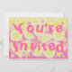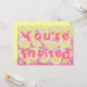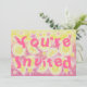 Fruidosa, tibia, dulce y amarga... trozos de limón, burbujas y estrellas flotan en limonada rosa. Invitación de fiesta con un diseño de personalizable rosa, amarillo, naranja y blanco para que usted pueda personalizar con su propio texto, imágenes e ideas. Un lápiz original de color y dibujo de tinta blanca de Jess Perry.