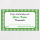 Utilice estos pegatinas personalizados para sus tarros de conservas en sus pepinillos, conservas y deleite caseros. La plantilla tiene un fondo verde a cuadros. Los pegatinas de los latas dicen: "Desde la cocina de tu nombre hecho en casa". Agregue tu nombre a la plantilla de etiquetas para personalizar. También puedes escribir en la fecha y lo que has hecho. Puede cambiar o quitar cualquiera de las palabras de la plantilla, o cambiar los estilos de fuente o los colores. — Si selecciona las etiquetas impermeables, puede colocarlas en el lavavajillas. — Pon algunas de estas macetas caseras en tu tarro de albañil, mermeladas, mantequilla, salsa, o lo que hayas cocinado, y tus seres queridos estarán tan impresionados con la presentación como con tus deliciosos platos.