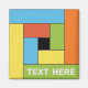 El diseño muestra el patrón de rectángulos en colores coincidentes. El cuadrado central es negro de forma predeterminada, pero se puede colorear cambiando el color de fondo. O puede insertar una pequeña foto cuadrada. El texto se puede editar, mover o eliminar fácilmente. ¡El diseño existe en 10 combinaciones de colores diferentes!
