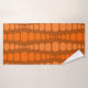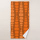 Este conjunto de toallas tiene un diseño moderno de mediados de siglo de rectángulos redondeados en dos tonalidades de naranja que corren verticalmente sobre un campo marrón.