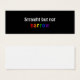 Este marcador tiene un fondo negro con "recto pero no" que contrasta en un tipo de letra blanco. "angosto" está escrito en varios colores - rojo. naranja, amarillo, verde, azul y morado.