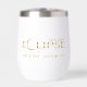Muestra la emoción de tu eclipse con estas gafas conmemorativas de vino sin tallo, con un gráfico simulado de eclipse dorado. Personalizar con su ciudad y estado visual. Cambie los colores del texto para que se adapten a su gusto personal. Ideal para ver recuerdos y recuerdos de fiestas. Agarra algo para que tus amigos e invitados conmemoren este extraño acontecimiento astronómico.