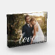Deleite a los recién casados con un regalo verdaderamente memorable: este bloque de fotos de boda personalizadas elegantes con un estilo de letra de amor con florituras de cola larga. Este recuerdo chic y moderno está diseñado para mostrar hermosamente su foto de boda favorita, creando una pieza atemporal que apreciarán por siempre. Perfecto para decorar su hogar con un toque de elegancia y amor, este bloque de fotos personalizado añade un toque sentimental a cualquier espacio. Atento y único, es la forma perfecta de celebrar su día especial.
