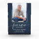 Un recuerdo de acrílico transparente mantiene una foto de su ser querido, su nombre y fechas de nacimiento y muerte con "Para Siempre en Nuestros Corazones" en letra elegante sobre un fondo de tela vaquera azul. Artículos COINCIDENTES en nuestra colección.