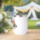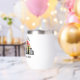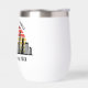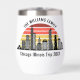 Vaso de vino personalizado para vacaciones en Chicago, Illinois, con una silueta de la silueta de la ciudad frente a una puesta de sol genial. Recuerdo de viaje genial para un viaje familiar.