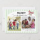 Esta tarjeta de Navidad horizontal presenta un diseño alegre y conmovedor enmarcado dentro de un borde suave y rayado de verde claro y adornado con un lazo rojo y verde. En la parte superior, la frase "Recuerdos FELICES" se muestra de manera prominente, combinando una fuente audaz y festiva con escritura elegante. Un lazo de cinta roja y verde agrega un toque festivo alegre en la esquina superior derecha. La tarjeta ofrece espacio para 2 fotos y texto personalizado, en el reverso, para un mensaje personal. El diseño transmite hermosamente calidez, conexión y celebración, lo que la convierte en un saludo navideño encantador.